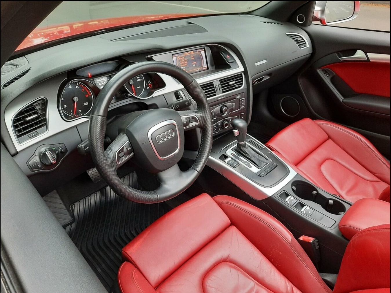 Интерьер автомобиля выполнен в смелом красном цвете, продолжая экспрессивную тему экстерьера и создавая особую атмосферу внутри салона. Высококачественная кожаная отделка, эргономичные сиденья и современная мультимедийная система обеспечивают премиальный уровень комфорта. Салон рассчитан на размещение до 3 пассажиров и оборудован всем необходимым для приятной поездки, включая кондиционер и качественную акустику. Аренда Audi A5 Quattro в W-cars без водителя — это ваша возможность испытать немецкое качество и зарядиться энергией одного из самых стильных купе современности.