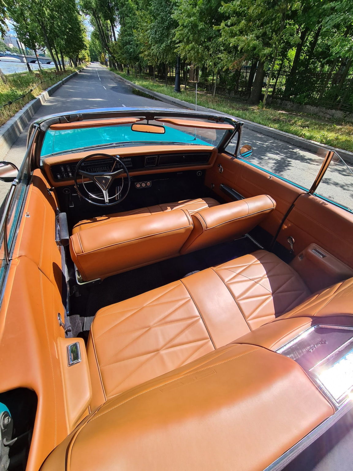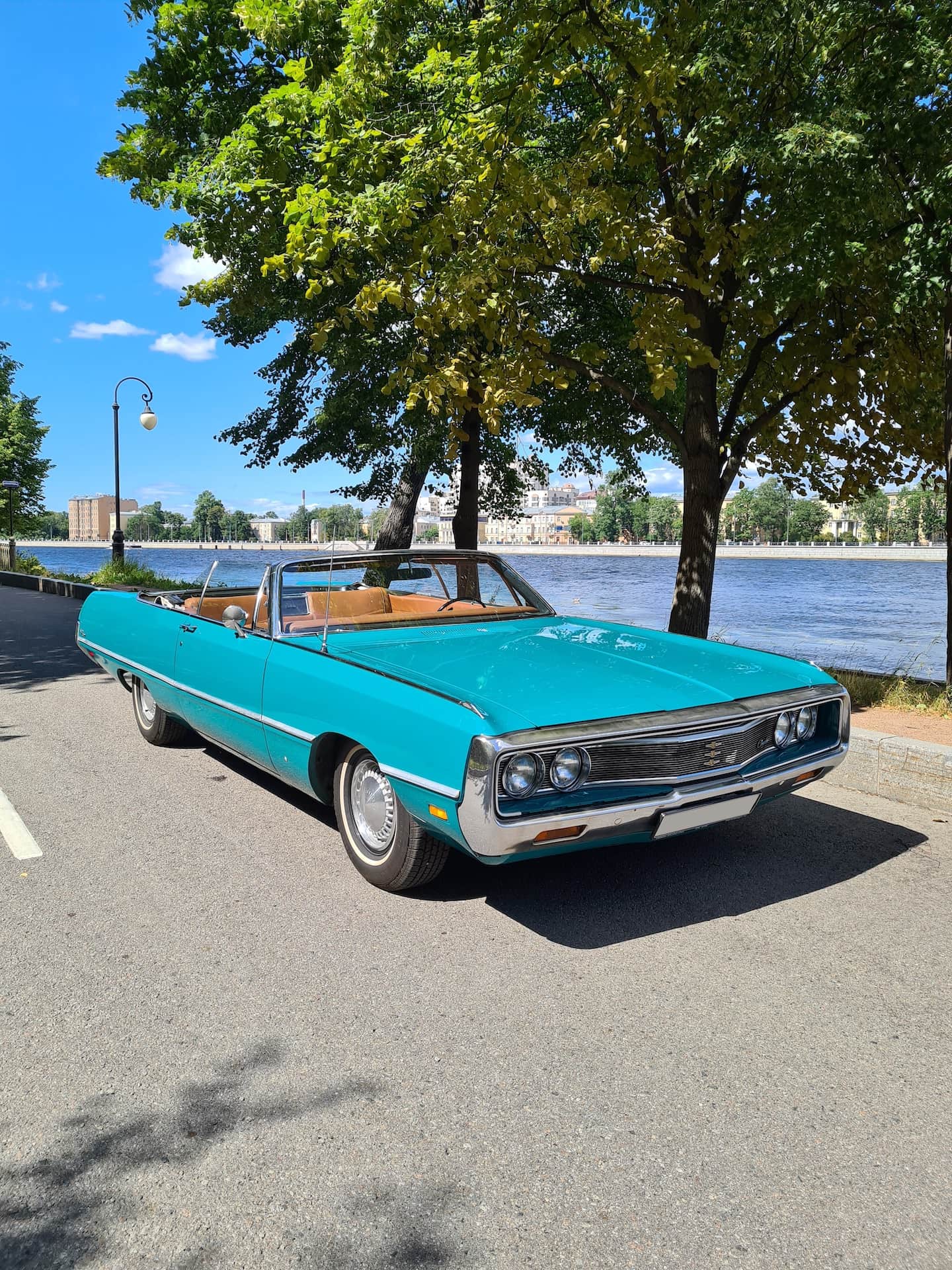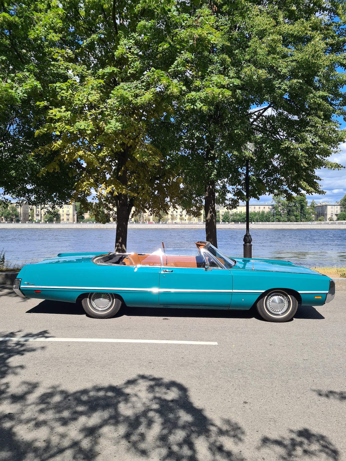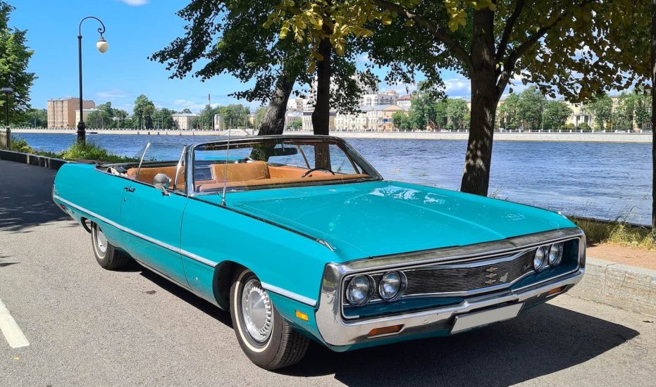В автопарке W-cars этот монументальный кабриолет представлен в редком бирюзовом цвете, который в сочетании с обилием хрома делает его центром внимания в любой обстановке. Автомобиль станет идеальным выбором для ретро-свадьбы, атмосферной фотосессии в стиле 60-х или эффектной прогулки по вечернему Санкт-Петербургу.