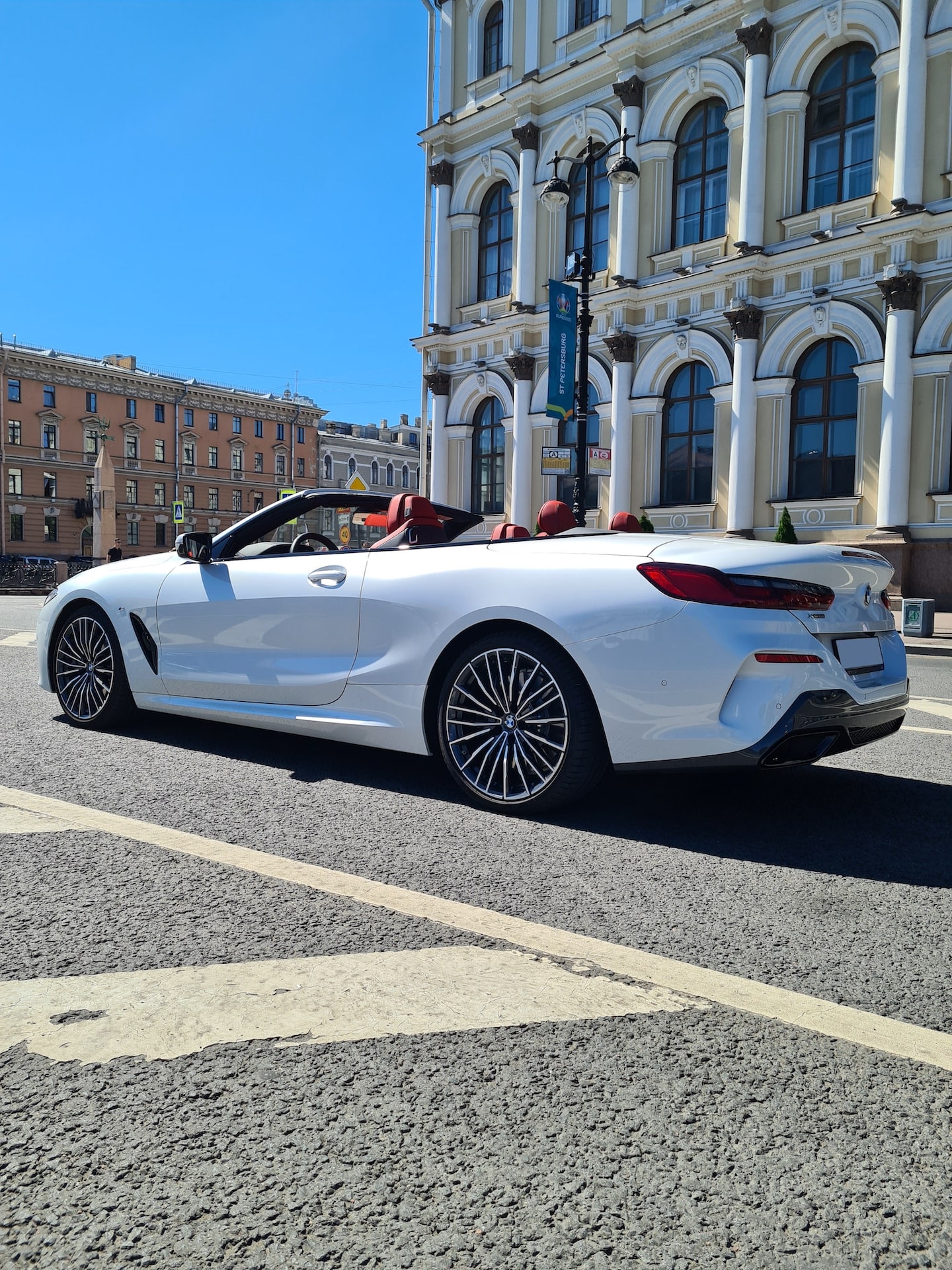 Технические характеристики базируются на 3,0-литровом бензиновом двигателе мощностью 340 л.с. Прокат этой модели позволяет оценить сбалансированное шасси и динамику разгона, характерную для флагманской 8-й серии. Автомобиль укомплектован современной системой кондиционирования и качественной аудиосистемой, что поддерживает комфортную температуру и атмосферу в салоне даже при движении с открытым верхом.