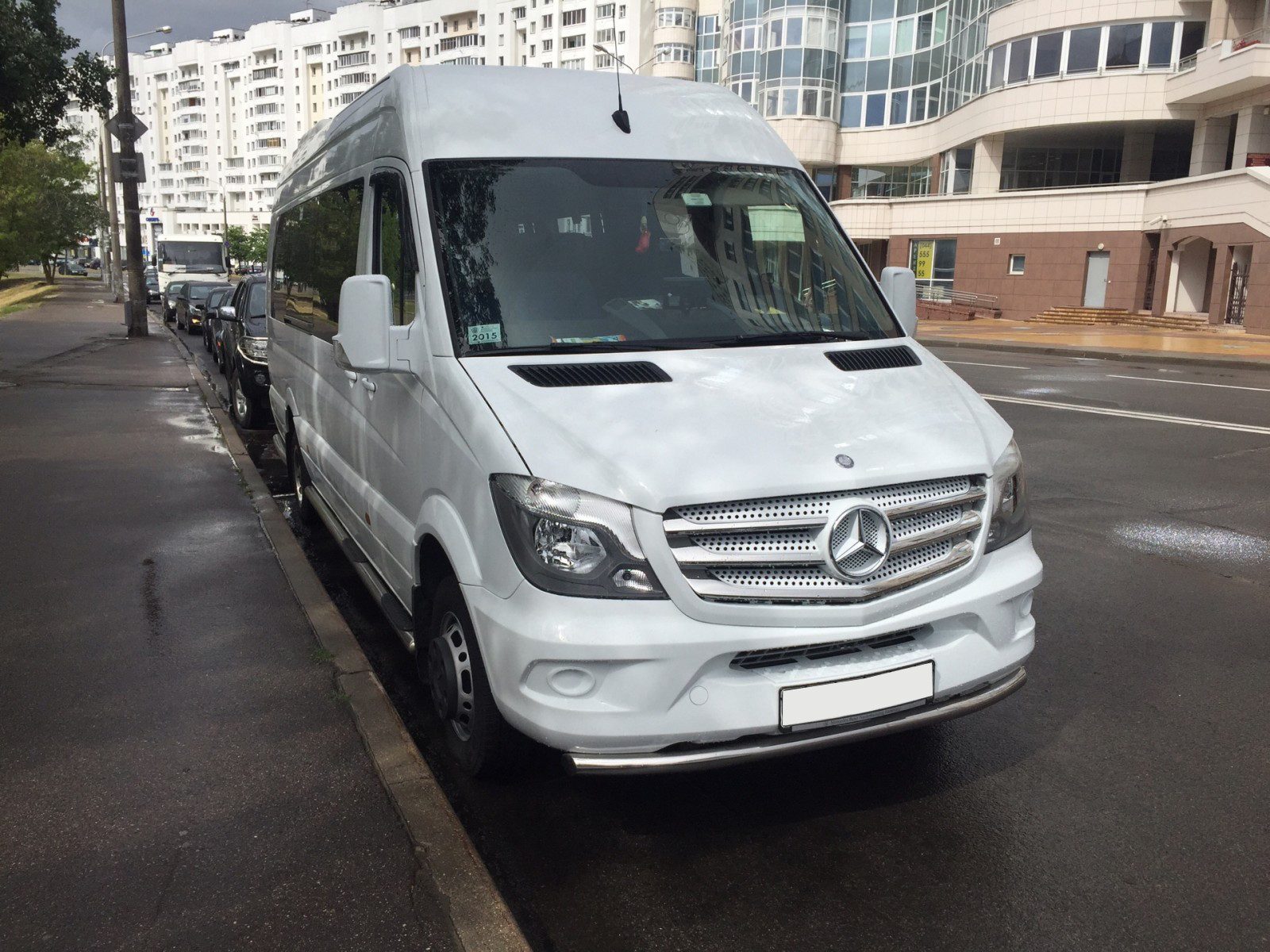 Нельзя не отметить отличный показатель шумоизоляции салона. Хотя дизель при определенном количестве оборотов может прослушиваться, на уши это не давит, да и разговаривать громче не приходится при закрытых окнах. Несмотря на внушительные габариты, новенький Mercedes Sprinter New достаточно уверенно совершает любые маневры на парковках.